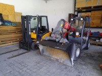 Der "kleine" hat eine Hubkraft von max. 1,2t und eine Hubhöhe von 4,5m. Mit nur 1,6m Breite und seiner Höhe von knapp 2m kommt er auch durch enge Durchfahrten. Er ist aufgrund seiner kompakten Bauweise sehr wendig und übersichtlich.